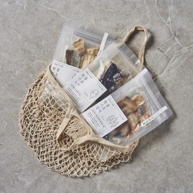 강아지통생선 선물세트: 대구40g, 도치50g, 잡어85g, 그물망 포장 / 고양이통생선 선물세트: 연어85g, 방어75g, 송어65g, 그물망 포장 |